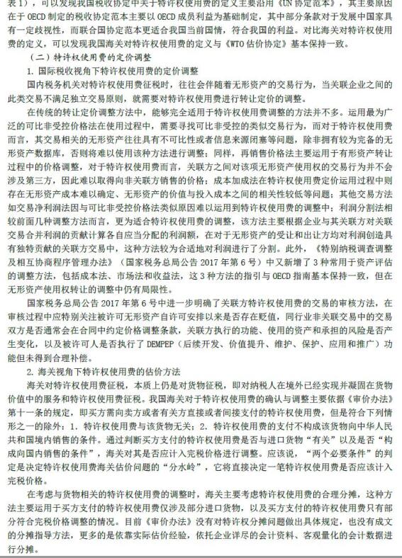 导读: 专家学者对于国际税收视角,海关视角下特许权使用费的研究从理论到实践都有比较完整的思路,但是对于两者之间的比较研究较少.文章从国际税收视角和海关视角下特许权使用费定义,定价的方法入手,分析两者存在的差异,冲突以及产生这种差异的原因,并结合两者的发展趋势提出海关特