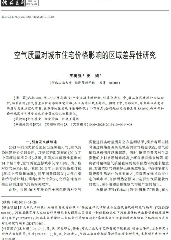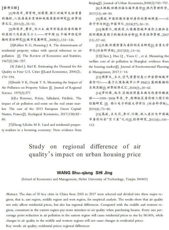 导读:选取2005年~2017年我国30个重点城市的数据,将其分为东、中、西三大区域进行实证分析,结果表明:空气质量不仅会影响住宅价格评估、资产评估、房地产评估,而且具有区域差异性。相对于中、西部地区,东部地区消费者购房时更关注空气质量,在东部地区空气污染每降低1个百分点,会引起住宅价格上涨58.06%,而中部和西部地区空气质量变化不会引起住宅价格变化。