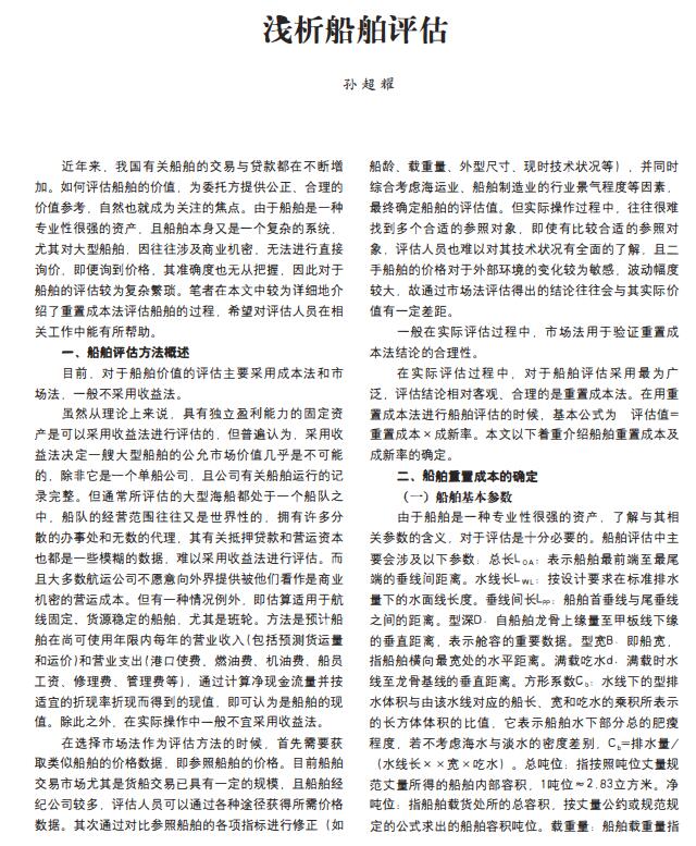 导读:近年来,我国船舶评估公司有关船舶评估的交易与贷款都在不断增加。如何船舶抵押评估,船抵押评估的价值,为委托方提供公正、合理的价值参考,自然也就成为关注的焦点。由于船舶是一种专业性很强的资产.且船舶本身又是一个复杂的系统.尤其对大型船舶价值评估,因往往涉及商业机密,无法进行直接询价,即便询到价格,其准确度也无从把握.因此对于船舶的评估较为复杂繁琐。笔者在本文中较为详细地介绍了重置成本法评估船舶的过程,希望对评估人员在相关工作中能有所帮助。