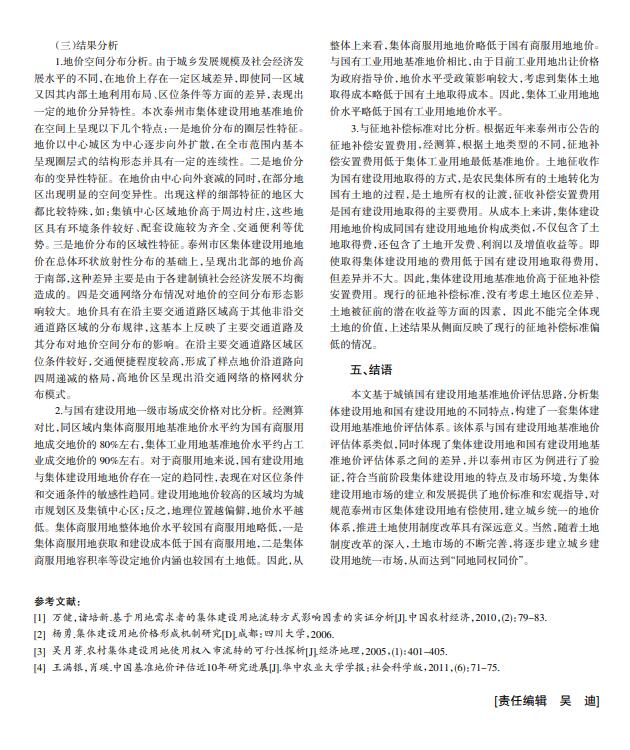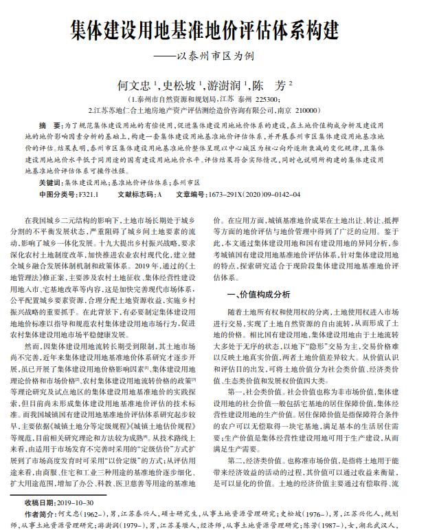 导读:房地产评估公司为了规范集体建设用地的有偿使用,促进集体建设用地地价体系的建设,土地评估公司在土地价值构成分析及建设用地的地价影响因素分析的基础上,构建一套集体建设用地基准地价土地评估体系,并开展泰州市区集体建设用地基准地价的评估。结果表明,泰州市区集体建设用地基准地价整体呈现以中心城区为核心向外逐渐衰减的变化规律,且集体建设用地地价评估水平低于同用途的国有建设用地地价水平。评估结果符合实际情况,同时也说明所构建的集体建设用地基准地价评估体系可操作性强。