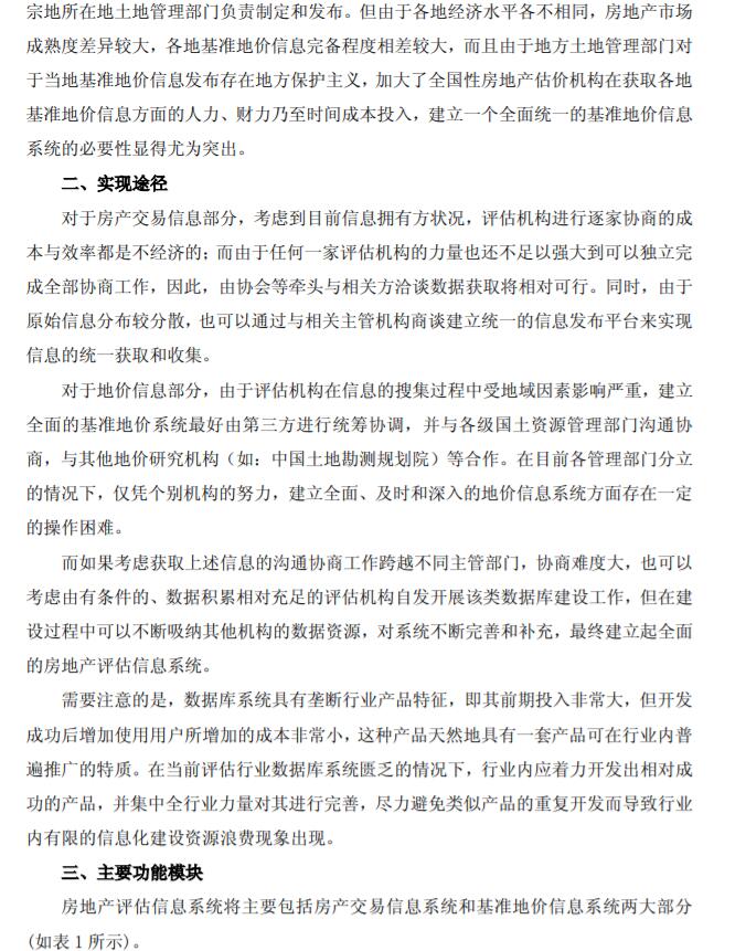 导读:房地产交易市场是中国最活跃的交易市场之一,房地产评估、厂房评估也是评估公司各单项资产评估中 需求量较大的土地评估服务,市场与需求的双双走高为房地产评估创造了其他诸多单项资产 评估尚不具备的信息化建设的良好条件。全面建设房地产评估信息化系统将更好地服务 于房地产评估、服务于房地产市场。(作者:杨志明)