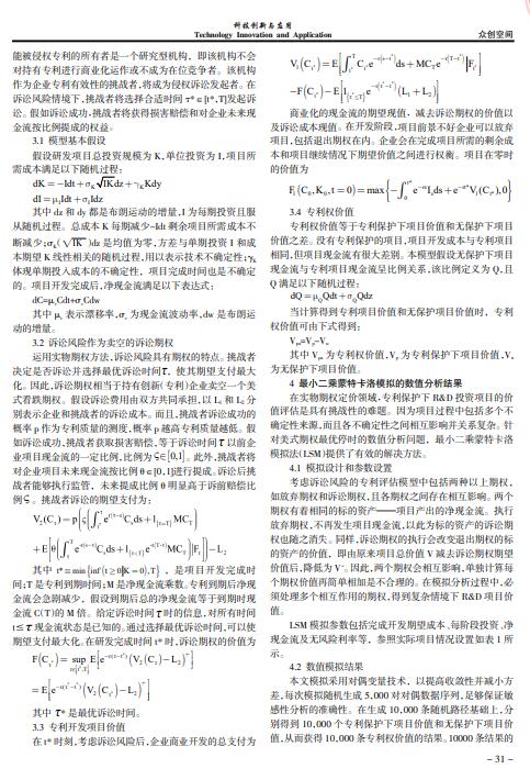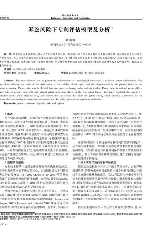 导读:技术创新成果最有效的保护方式是获得专利授权。影响权利资产评估的关键因素是权利稳定性,诉讼风险是专利评估中的首要因素。专利权评估可分解为技术价值和权利价值两部分,专利价值评估定义为有专利保护和无保护情况下项目价值的差额。文章基于实物期权理论,专利评估公司构建诉讼风险下专利评估模型,专利评估机构并分析影响专利权价值的关键因素,为创新企业的专利决策和监管部门的政策引导提供参考。