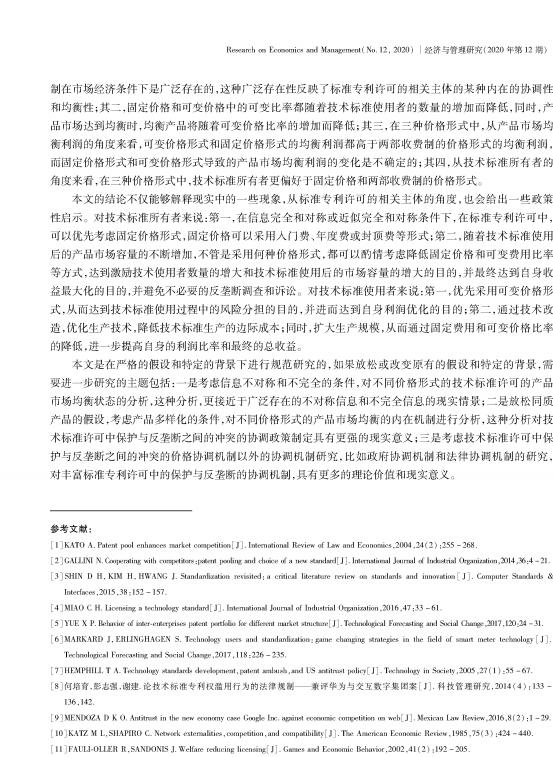 导读:资产评估公司,上海评估公司,评估机构,资产评估机构通过构建经济数学模型,对同质产品条件下的标准专利许可中的保护与反垄断的固定价 格、可变价格和两部收费制等三类价格协调机制的内在机理进行了分析。主要结论包括:三种价格形式在市 场均衡条件下具有不同的均衡特点,体现出技术标准许可的相关主体的不同利益诉求;土地评估和可变价格 比率都随着技术标准使用者的数量的增加而降低;可变价格比率和均衡产量负相关;在完全和对称信息条件 下,技术标准所有者更偏好于单一的固定价格和单一的可变价格。本文的分析结论丰富了相关理论研究,不 仅得到了 MPEG的相关技术标准许可的典型案例的部分支持,也对技术标准的相关主体具有很好的政策性专利价格评估 启示作用。    |