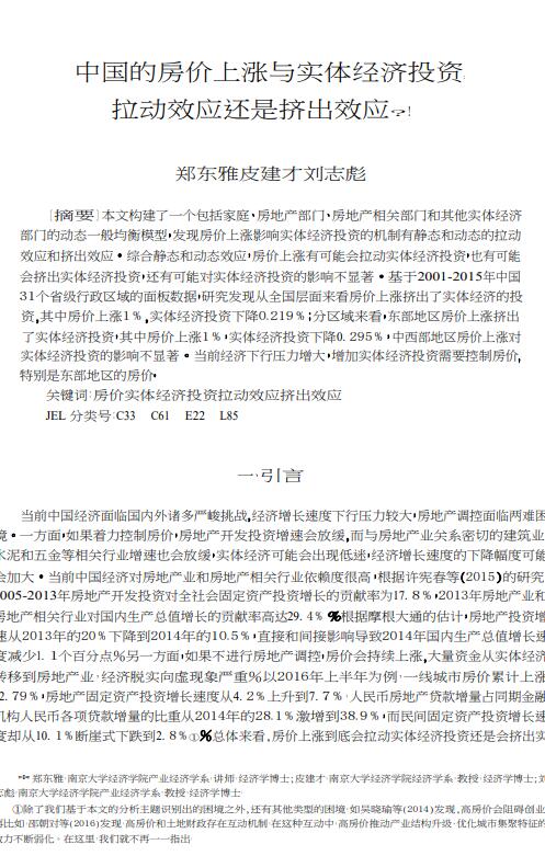 导读:上海评估公司构建了一个包括家庭、房地产部门、房地产相关部门和其他实体经济 部门的房地产评估动态一般均衡模型,发现房价上涨影响实体经济投资的机制有静态和动态的拉动 效应和挤出效应。土地评估综合静态和动态效应,房价上涨有可能会拉动实体经济投资,也有可能 会挤出实体经济投资,还有可能对实体经济投资的影响不显著。基于2001-2015年中国 31个省级行政区域的面板数据,房地产评估公司研究发现从全国层面来看房价上涨挤出了实体经济的投 资,其中房价上涨1%,实体经济投资下降0.219%;分区域来看,东部地区房价上涨挤出 了实体经济投资,房产评估其中房价上涨1%,实体经济投资下降0. 295%,中西部地区房价上涨对 实体经济投资的影响不显著。当前经济下行压力增大,增加实体经济投资需要控制房价, 特别是东部地区的房价。   |