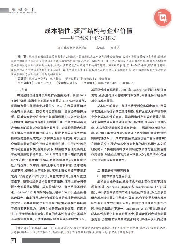 导读:价格评估机构实证结果表明:2011—2015年间,即产能过剩时,成本粘性与企业价值呈负相关关系;2016—2018年煤炭上市公司成本粘性与企业价值呈正相关关系;资产结构会加剧产能过剩时期成本粘性与企业价值之间的负相关关系。煤炭是我国能源业的重要支撑,加强成本管理是煤炭上市公司提升采矿权评估企业价值、实现探矿权评估可持续发展的必要手段,因此成本粘性对煤炭上市公司企业价值是否具有影响作用值得深入研究。经营权评估,特许经营权评估,自然资源评估选取2011—2018年沪深煤炭上市公司为样本,使用层级回归研究成本粘性对企业价值的影响关系,并进一步研究资产结构对二者的调节作用。.jpg) .jpg) .jpg) |