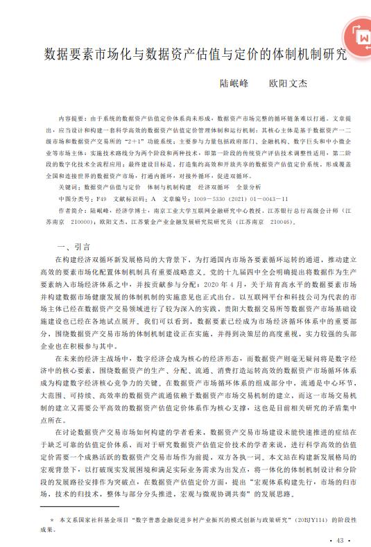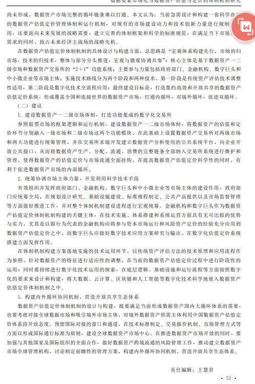 导读:由于系统的数据森林资产评估资产估值定价体系尚未形成,树木评估数据资产市场完整的循环链条难以打通。文章提出,苗木评估应当设计和构建一套科学高效的数据资产估值定价管理体制和运行机制:非专利评估,其核心主体是基于数据资产一二级市场和数据资产交易所的“2+1”功能系统;农产品评估主要参与力量包括政府部门、金融机构、数字巨头和中小微企业等市场主体;实施技术路线分为两个阶段和两种技术,资产价格评估即第一阶段的传统资产评估技术调整性适用,第二阶段的数字化技术全流程应用;最终建设目标是,打造集约高效和开放共享的数据资产估值定价系统,形成覆盖全国和连接世界的数据资产市场,打通内循环,对接外循环,促进双循环。   |
