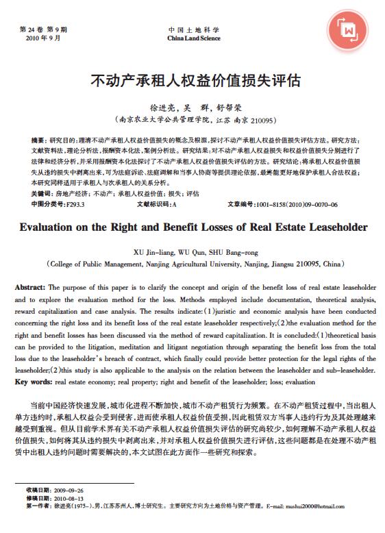 导读:研究目的:资产评估机构,资产评估理清不动产承租人权益价值损失的概念及根源,整体资产评估公司探讨不动产承租人权益价值损失评估方法。研究方法:文献资料法,理论分析法,报酬资本化法,案例分析法。研究结果:对不动产承租人权益损失和权益价值损失分别进行了法律和经济分析,土地评估并采用报酬资本化法探讨了不动产承租人权益价值损失评估的方法。研究结论:将承租人权益价值损失从违约损失中剥离出来,可为法庭诉讼、法庭调解和当事人协商等提供理论依据,最终能更好地资产评估机构保护承租人合法权益;本研究同样适用于承租人与次承租人的关系分析。    |