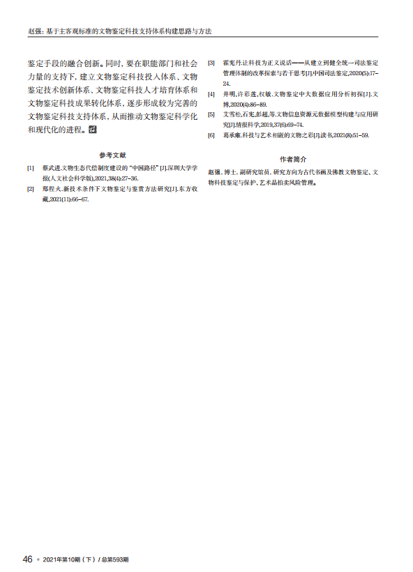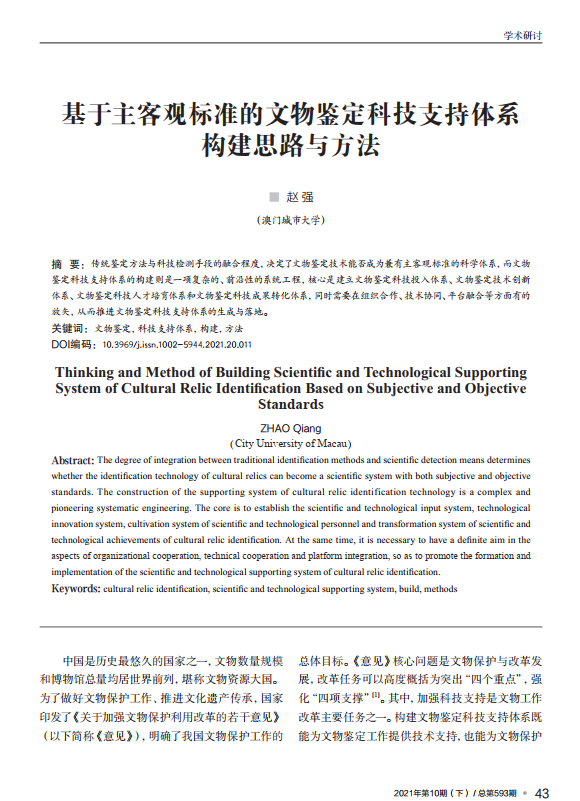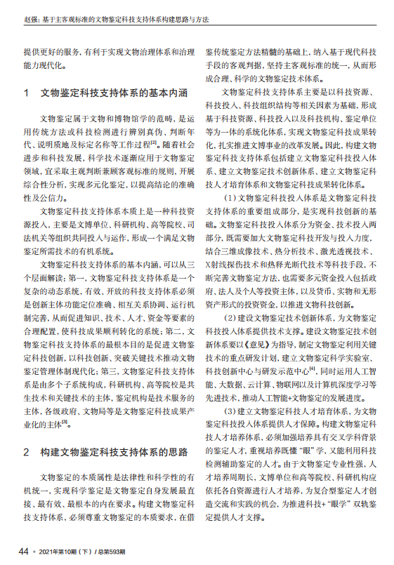 导读 : 传统鉴定方法与科技检测手段的融合程度,商标无形资产评估决定了文物鉴定技术能否成为兼有主客观标准的科学体系,而商标资产评估文物鉴定科技支持体系的构建则是一项复杂的、前沿性的无形资产专利评估系统工程,核心是建立文物鉴定科技投入体系、文物鉴定技术创新体系、文物鉴定科技人才培育体系和文物鉴定科技成果转化特许经营权评估体系,同时技术评估需要在组织合作、技术协同、平台融合等方面有的放矢,从而推进文物鉴定科技支持体系的生成与落地。