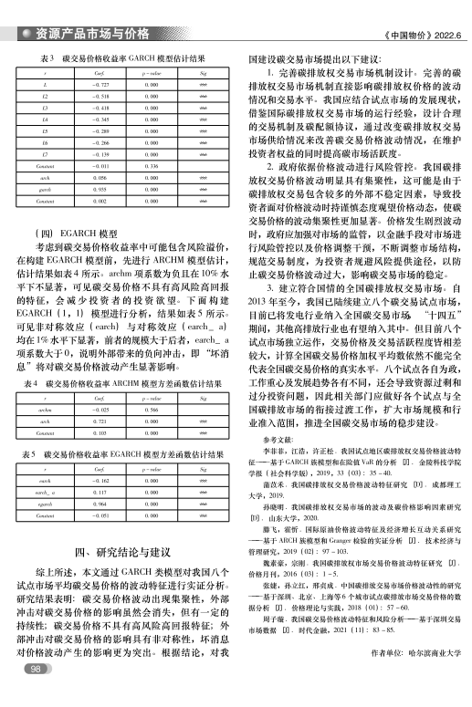 导读: 碳交易价格及其波动情况直观反映了碳交易市场的稳定水平,是投资者关注的重要内容。文章整体资产评估,无形资产评估,房地产评估通过构GARCH 类模型分析全国平均碳交易价格的波动情况,研究结果显示: 碳交易价格波动出现集聚性,土地评估,设备评估,固定资产评估外部冲击对碳交易价的影响虽然会消失,但有一定的持续性; 碳交易价格不具有高风险高回报特征; 外部冲击对碳交易价格的影响具有非对称性,坏消息对价格波动产生的影响更为突出。因此,有关部门应完善碳排放权交易市场机制设计,依据价格波动进行风险管控,建立符合我国国情的全国碳排放权交易市场。  |
