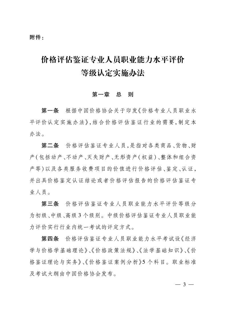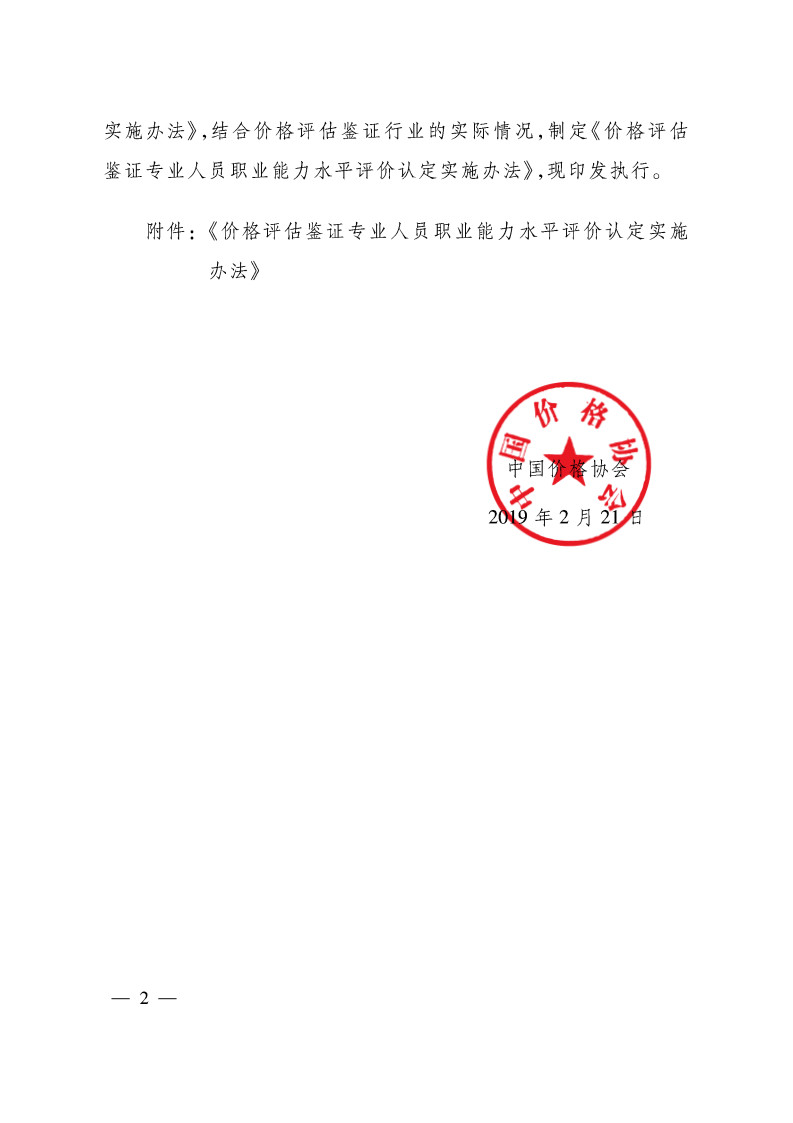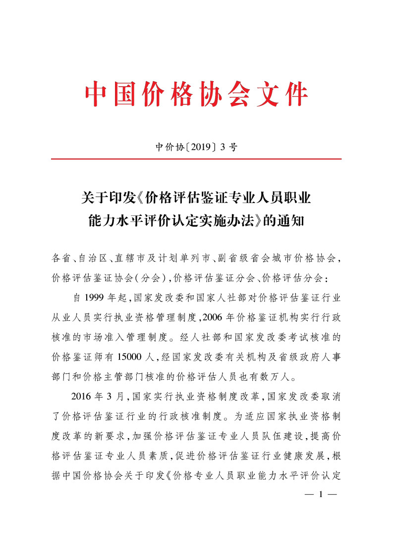 关于印发《价格评估鉴证专业人员职业能力水平评价认定实施办法》的通知