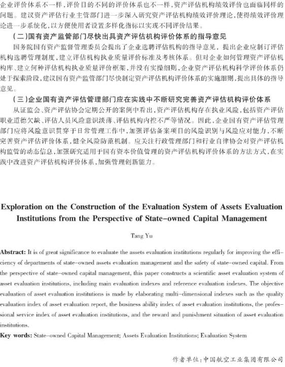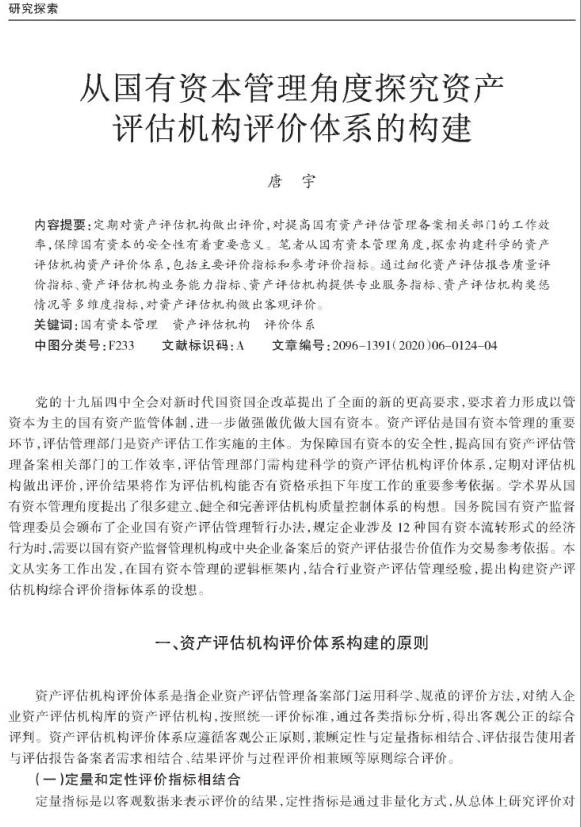 从国有资本管理角度探究资产评估机构评价体系的构建