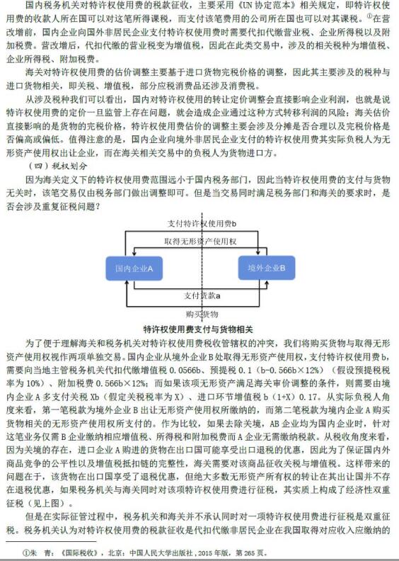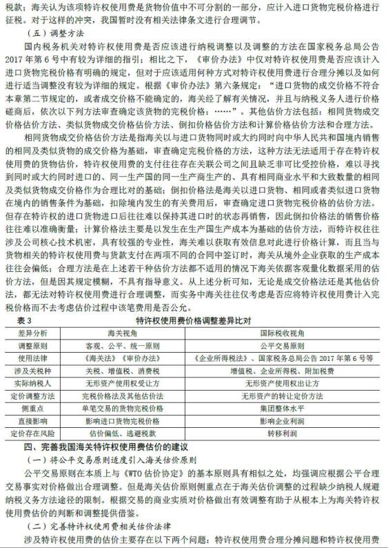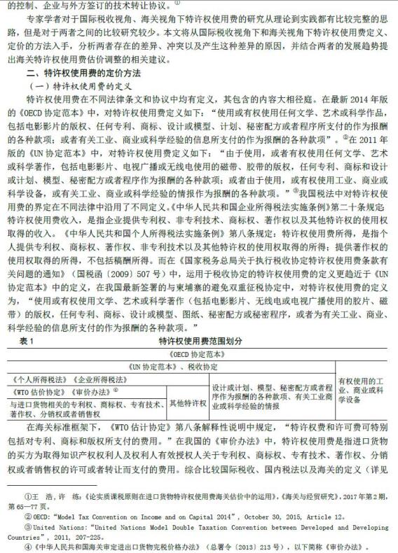 导读: 专家学者对于国际税收视角,海关视角下特许权使用费的研究从理论到实践都有比较完整的思路,但是对于两者之间的比较研究较少.文章从国际税收视角和海关视角下特许权使用费定义,定价的方法入手,分析两者存在的差异,冲突以及产生这种差异的原因,并结合两者的发展趋势提出海关特
