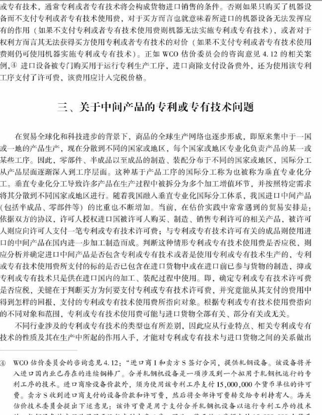 导读:随着现代科学技术的发展,进口货物涉及专利和专有技术交易的情况也日益增多,专利和专有技术使用费也逐渐成为海关估价实践中面临的重要问题.本文论述了专利或专有技术使用费与进口货物构成"有关"的无形资产评估、专利评估、专利价格评估,专利转让评估、专利资产评估单项资产评估三种类型关系的实质,并分别就这三种类型关系中专利或专有技术使用费是否应税进行探讨.随着我国逐步融入垂直专业化国际分工体系,涉及专利或专有技术使用费的中间产品进口量也不断增加      .本文认为判定中间产品相关的专利或专有技术使用费是否应税,关键在于确定专利或专有技术使用费指向的对象,确定进口的中间产品是否已经包含所许可的专利或专有技术,或是否利用所许可的专利或专有技术生产加工的.本文还对机械和化工及药品行业中中间产品所涉及的专利或专有技术使用费问题展开分析. |