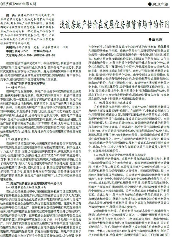 导读:在房地产行业飞速发展中,住房租赁市场发展已成为党和国家关注的重要方面,其和房地产估价密切相关.我国要围绕住房租赁市场动态发展,准确把握其和房地产估价的关系,深化房地产估价各环节,加快住房租赁市场发展步伐.因此,文章从不同角度入手探讨了房地产评估、资产评估、单项资产评估在发展住房租赁市场中的作用.
