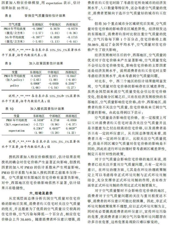 导读:选取2005年~2017年我国30个重点城市的数据,将其分为东、中、西三大区域进行实证分析,结果表明:空气质量不仅会影响住宅价格评估、资产评估、房地产评估,而且具有区域差异性。相对于中、西部地区,东部地区消费者购房时更关注空气质量,在东部地区空气污染每降低1个百分点,会引起住宅价格上涨58.06%,而中部和西部地区空气质量变化不会引起住宅价格变化。