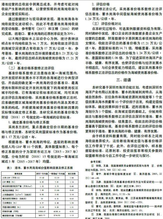 港池、蓄水用海定级与基准价格评估研究——以深圳市为例