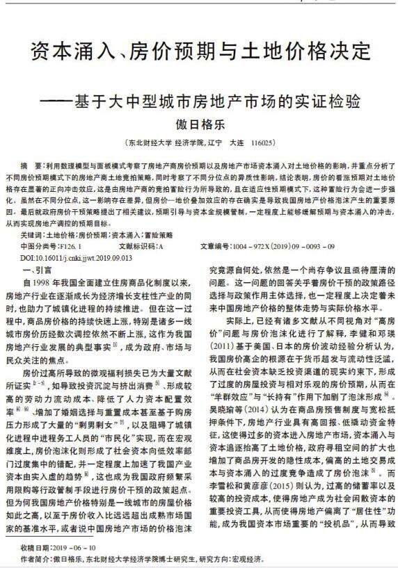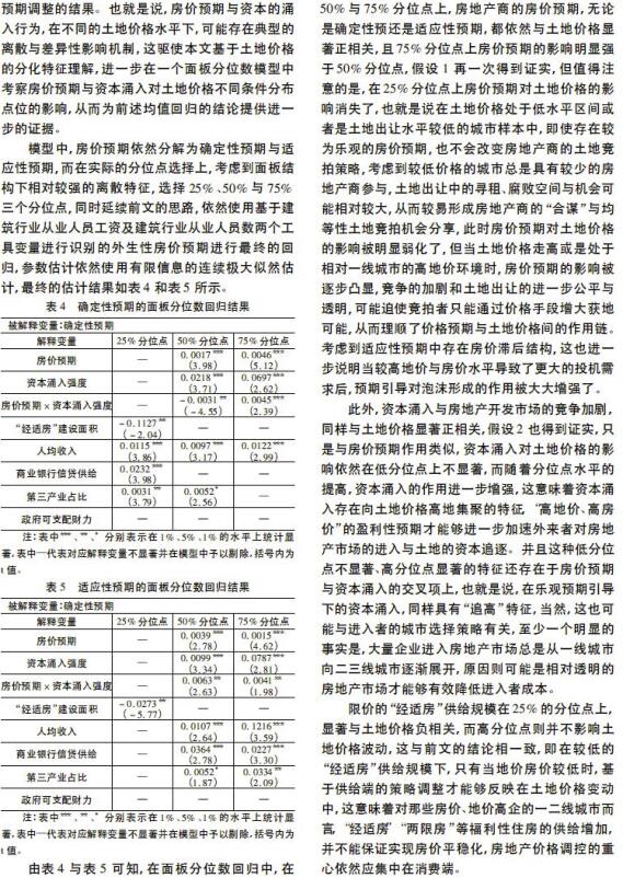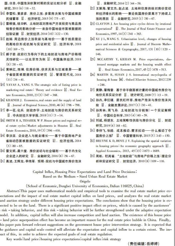 导读:利用数理模型与面板模式考察了房地产商房价预期以及房地产评估市场资本涌入对土地价格的影响,并重点分析了不同房价预期模式下的房地产商土地评估竞拍策略,同时考察了不同分位点的异质性影响,结论表明,房价的看涨预期对土地价格存在显著的正向冲击效应,这是由房地产商的竞拍冒险行为所导致的,且在适应性预期模式下,这种冒险行为会进一步强化。虽然在不同分位点,这一影响存在差异,但房价—地价叠加效应的存在确实是导致我国房地产价格泡沫产生的重要原因。最后就政府房价干预策略提出了相关建议,预期引导与资本金规模管制,一定程度上能够缓解预期与资本涌入的冲击,从而实现房地产调控的   预期目标。 |