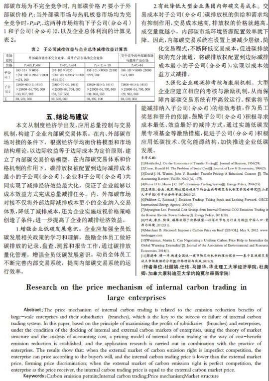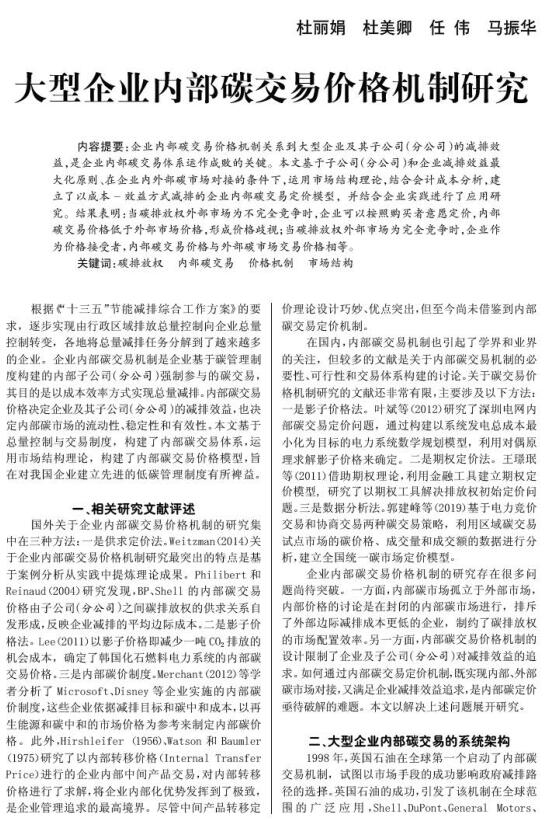 导读:企业内部碳交易价格评估的资产评估公司来评估资产机制关系到大型企业及其子公司(分公司)的减排效益,是企业内部碳交易体系运作成败的关键。本文基于子公司(分公司)和企业减排效益最大化原则、在企业内外部碳市场对接的条件下,运用市场结构理论,结合会计成本分析,建立了以成本-效益方式减排的企业内部碳交易定价模型。  企业实践进行了应用研究。结果表明:当碳排放权外部市场为不完全竞争时,企业可以按照购买者意愿定价,内部碳交易价格低于外部市场价格,形成价格歧视;当碳排放权外部市场为完全竞争时,企业作为整体资产评估,单项资产评估价格接受者,内部碳交易价格与外部碳市场交易价格相等。 |