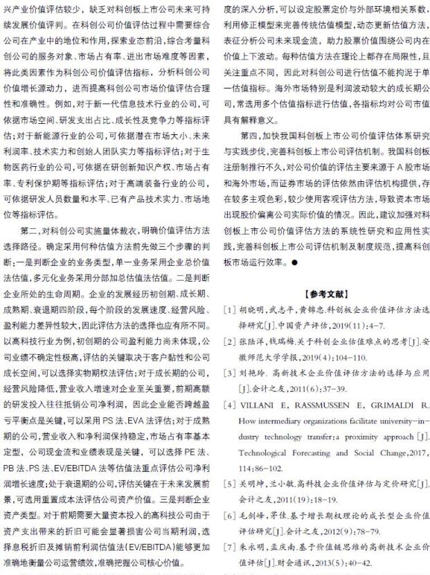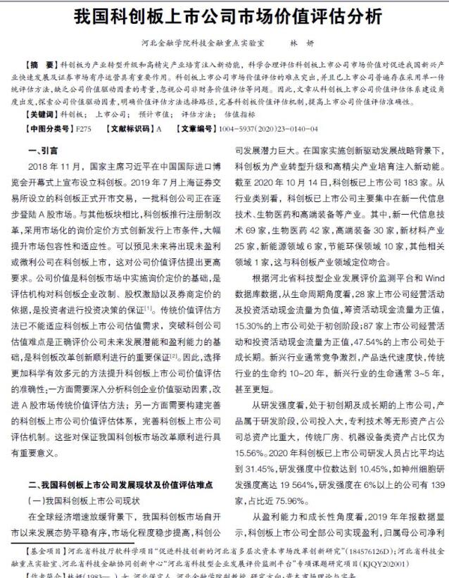导读:科创板为产业转型升级和高精尖产业培育注入新动能,科学合理评估科创板上市公司市场价值对促进我国新兴产业快速发展及证券市场有序运营具有重要作用。科创板上市公司市场价值评估的难点突出,并且已上市公司普遍存在采用单一传统专利技术评估、专业资产评估、商誉减值测试、商誉减值测试评估评估方法,缺乏公司价值驱动因素的考量,忽视公司非财务价值评估、商标权资产评估等问题。因此,文章从科创板上市公司价值评估体系建设角度出发,探索公司价值驱动因素,明确价值评估方法选择路径,完善科创板价值评估机制,提高上市公司价值评估准确性。   |