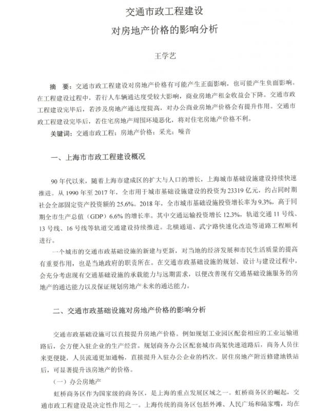 导读:交通市政工程建设对房地产评估、租金评估有可能产生正面影响,也可能产生负面影响。在工程建设过程中,若行人车辆通达度受较大影响,商业房屋租金评估收益会下降。交通市政工程建设完毕后,若涉及房地产通达度提高,对办公商业房地产价格会有提升作用。交通市政工程建设完毕后,若住宅房地产周围环境恶化,将对住宅房地产价格不利。
