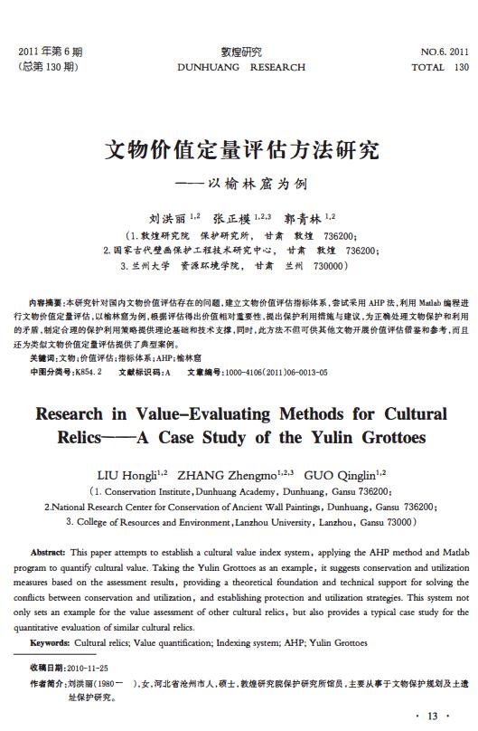 导读:本研究针对国内文物价值资产评估存在的问题,建立文物价值评估指标体系,尝试采用AHP法,利用Matlab编程进行文物价值机器设备评估,以榆林窟为例,根据评估资产得出字画评估,书画评估,艺术品评估价值相对重要性,提出保护利用措施与建议,为正确处理文物保护和利用的矛盾,制定合理的保护利用策略提供理论基础和技术支撑,同时,此方法不但可供其他文物开展价值评估借鉴和参考,而且还为类似文物价值定量评估提供了典型案例。