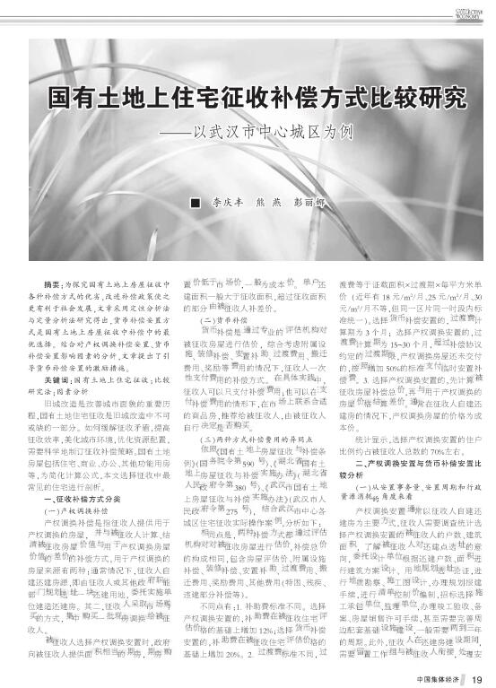 导读:为探究国有土地上房屋征收中 各种补偿方式房地产评估,土地评估,房屋评估的优劣,房产评估公司改进补偿政策使之 更有利于社会发展!房屋评估公司采用定性分析法 与定量分析法研究得出,货币补偿妥置方 式是国有土地上房屋征收中补偿地价评估中的最 优选择"结合对产权调换补偿妥置、货币 补偿妥置影响因素的分析,文章提出了引 导货币补偿妥置的激励措施"