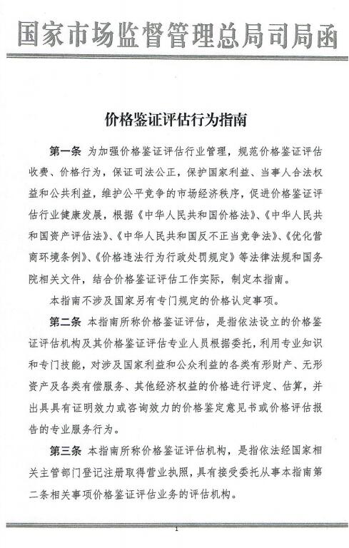 导读:为加强价格鉴证评估、资产评估行业管理,规范评估机构价格鉴证评估\评估公司收费、价格行为,保证司法公正,保护国家利益、当事人合法权益和公共利益,维护公平竞争的市场经济秩序,促进资产评估机构,工程审价,价格鉴证评估行业健康发展,根据《中华人民共和国价格法》、《中华人民共和国资产评估法》、《中华人民共和国反不正当竟争法》、《优化营商环境条例》、《价格违法行为行政处罚规定》等法律法规和国务院相关文件,结合房地产评估公司,土地评估公司价格鉴证评估工作实际,制定本指南。第二条本指南所称价格鉴证评估,是指依法设立的价格鉴证评估机构及其价格鉴证评估专业人员根据委托,利用专业知识和专门技能,对涉及国家利益和公众利益的各类有形财产、无形资产及各类有偿服务、其他经济权益的价格进行评定、估算,并出具具有证明效力或咨询效力的价格鉴定意见书或价格评估报告的评估事务所专业服务行为。    |