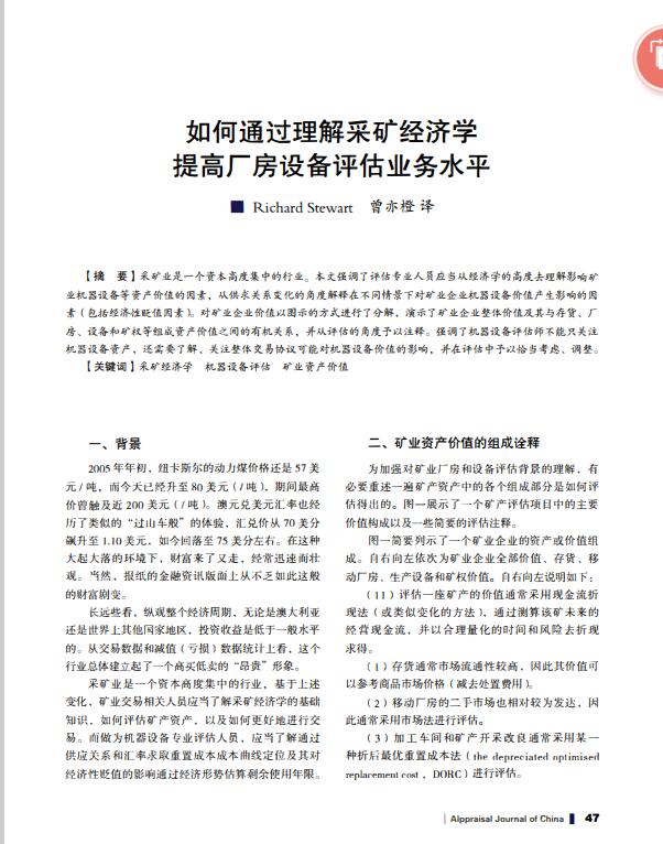 导读:采矿业是一个资本高度集中的行业。采矿权评估,探矿权评估强调了评估专业人员应当从经济学的高度去理解影响矿业机器设备评估等资产价值的因素,资产价值评估从供求关系变化的角度解释在不同情景下对矿业企业机器设备价值产生影响的因素(包括经济性贬值因素)。企业评估公司对采矿权评估,矿业企业价值以图示的方式进行了分解,演示了矿业企业整体价值及其与存货、厂房、设备和矿权等组成资产价值之间的有机关系,并从评估的角度子以注释。强调了机器设备评估师不能只关注机器设备资产,还需要了解、关注整体交易协议可能对机器设备价值的影响,并在评估中子以恰当考虑、调整。   |