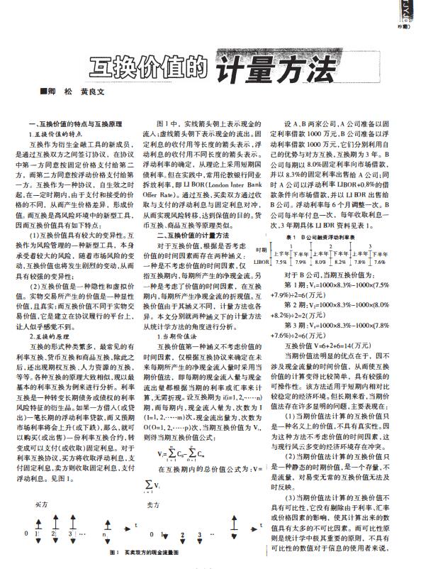 导读:互换的形式种类繁多,最常见的有利率互换、货币互换和商品互换,除此之后,还出现期权互换、人力资源的互换,等等。各种互换的原理大致相似,现以最基本的利率互换为例来进行分析。利率互换是一种转变长期债务或债权的利率风险特征的衍生品。如果一方借入(或贷出)一笔长期的浮动利率贷款,而又预期市场利率将会上升(或下跌),那么,注册商标评估就可以购买(或出售)一份利率互换合约,技术评估转变成可以支付(或收取)固定利息。地价评估对于利率互换协议,厂房评估公司将收取浮动利息,支付固定利息,卖方则收取固定利息,支付浮动利息。互换价值第一种涵义不考虑专利价值评估时间因素,仅根据互换协议来确定在未来每期所产生的净现金流入量时采用当期价值法,即每期的现金流入械与现金流出呈都根据当期的利率或汇率来计算,无需折现。  |