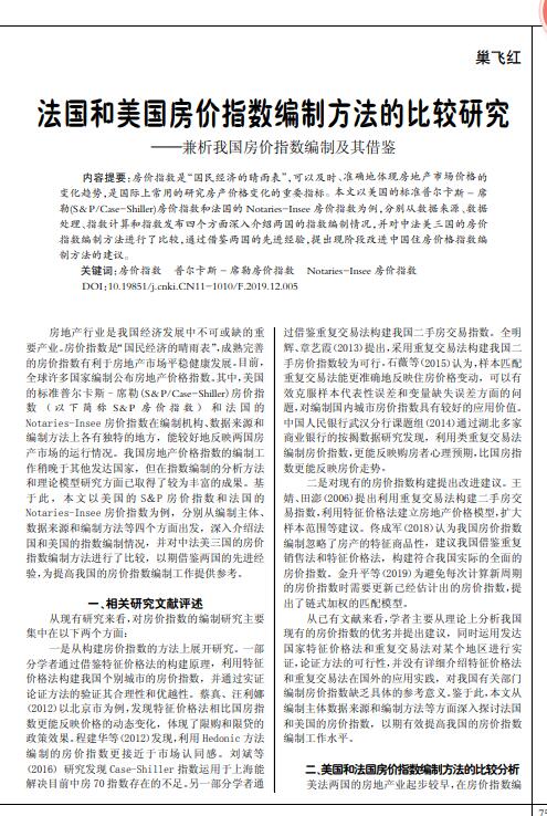 导读:房价指数是“国民经济的晴雨表”,可以及时、准确地体现房地产市场房地产评估,土地评估,地价评估价格的变化趋势,是国际上常用的研究房产价格变化的重要指标。本文以美国的标准普尔卡斯-席勒(S&P/Case-Shiller)房价指数和法国的Notaries-Insee房价指数为例,土地评估公司,房产评估公司,房屋评估公司分别从数据来源、数据处理、指数计算和指数发布四个方面深入介绍两国的指数编制情况,并对中法美三国的房价指数编制方法进行了比较,通过借鉴两国的先进经验,提出现阶段改进中国住房价格指数编制方法的建议。   |