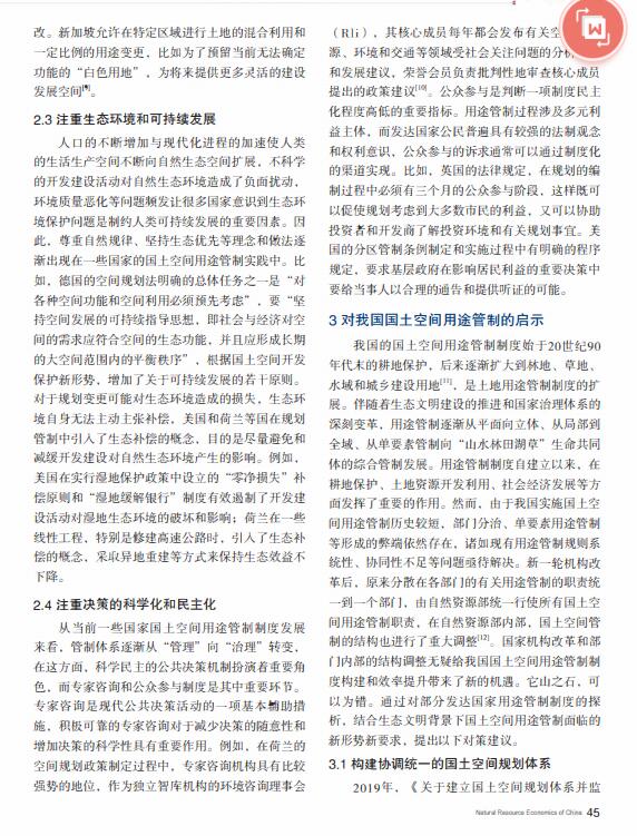 导读: 文章梳理分析了美、英、日、德等国在国土空间用途管制中的做法,认为协调统一的规划体系、完善的法律保障体系、“边界+管控”的国土空间功能分区管制手段和“分区+管制”的城市空间管制手段是确保管制效果的重要因素,并归纳出不同国家在国土空间用途管制中转让评估,企业价值评估,土地评估,房地产评估,房屋评估呈现出更加注重管制效率、管制的刚性与弹性、生态和可持续发展,以及决策的科学化和民主化等特点和 趋势。通过对这些国家国土空间用途管制的探析,从国土空间规划体系、机制、规则、实施等方面房产评估公司对我国构建更加完善的国土空间管制制度提出建议。    |
