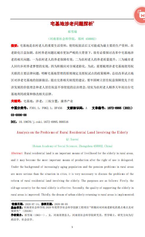 导读:宅基地是农村老人的重要生活资料,使用权放活后又可能成为最主要的生产资料。在老龄化日益加剧、农村养老问题比城市更加严峻的大背景下,很有必要探讨改革中宅基地涉老的房地产评估,土地评估,房屋评估相关问题,一为农村老人的养老保障有效,二为农村老人的养老质量提升,三为城市老人回归乡村养老梦想的实现,四为积极应对全域老龄化。为此,房产评估公司,房屋评估公司,资产评估公司需要梳理涉老宅基地使用权关联的主要法律问题,明晰宅基地管理的原则规定及授权试点的政策精神,总结改革试点地区对涉老宅基地的创新做法,提出完善相关制度的建议。要牢固树立居住权益保障优先于经济发展的价值理念和老人居住权益不容侵犯的法治理念,切实为农村老人颐养天年而出台宅基地利用政策和修改相关法律。     |
