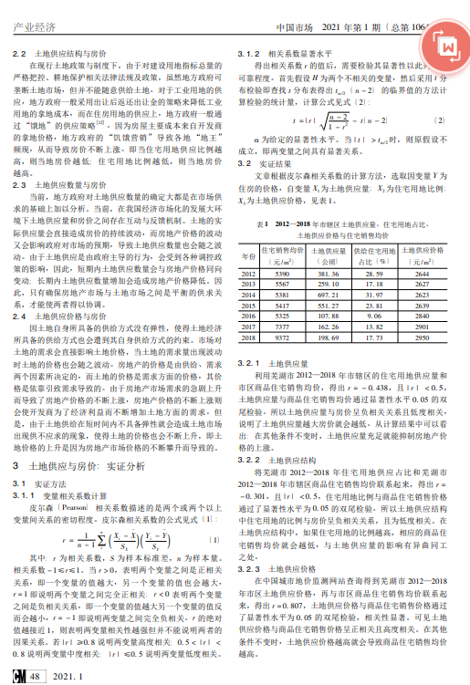 导读:土地评估公司通过梳理国内外土地供应与房价关系的相关文献,选取芜湖市2012—2018年时间序列数据,运用皮尔森系数分析了一级土地市场政府垄断下的土地评估土地供应方式、土地供应结构、土地供应数量、土地供应价格对房价的影响。个人资产评估研究表明:①土地供应方式与个人房产评估房价无关,土地供应结构与房价低度负相关,住宅用地供应比例越高,则房价越低。②土地供应量对房价影响效果显著,土地出让价格与房价波动的关系极为密切。③决定房价均衡的根本因素是房产市场的供求关系,在一级土地市场垄断情形下,地方政府倾向于以饥饿方式供应土地,即减少土地供应量,提高土地供应价格;同时,房地产商为了高利润而囤地,房屋价格评估对拉动地价也有重要影响。为此,需完善土地供应政策,优化用地供应结构,降低房价上涨的预期,打击以资囤地、闲置土地的不良行为。   |