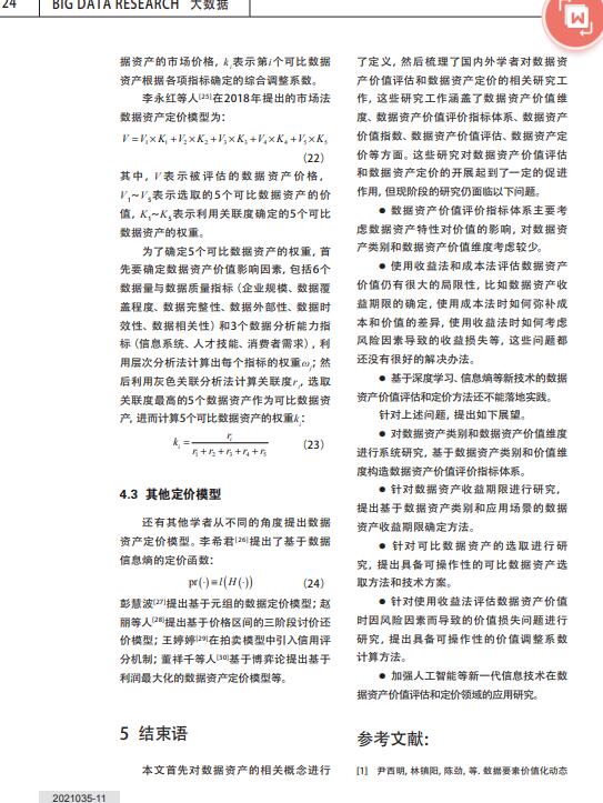 导读:无形资产价值评估在数字经济时代,专有技术评估数据成为新的关键生产要素。数据资产作为一种新的资产形式,如何对其进行价值管理成为一个新的研究课题。通过文献研究,非专利评估对国内外学者关于数据资产价值管理的研究成果进行系统梳理,专利技术资产评估在此基础上提出数据资产价值指数概念,专业评估公司用于衡量数据资产的相对价值水平;总结了运用层次分析法和层次分析法+模糊综合评价法计算数据资产价值指数的过程,并对其进行步骤分解;讨论了数据资产价值和价格、数据资产价值评估和数据资产定价之间的内在联系和区别,并对数据资产价值管理的未来研究进行展望。   |