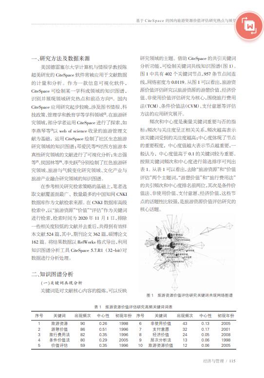 导读:资产评估随着我国旅游业的快速发展,资产评估公司旅游资源价值评估研究愈发受到学术界的重视。上海评估公司以中国知网CNKI数据库中524篇旅游资源价值评估研究相关文献为研究对象,评估机构利用科学计量工具CiteSpace绘制旅游资源价值评估研究领域知识图谱,资产评估机构探究其研究热点、发展历程和演变趋势。研究发现:(1)旅游资源价值评估研究领域核心关键词包括游憩价值、非使用价值、经济价值、旅行费用法、条件价值法等;(2)价格评估旅游资源价值评估研究领域热点包括理论基础研究、评估主体研究、评估方法研究;(3)旅游资源价值评估研究发展路径可分为3阶段,各阶段研究侧重点有所不同。   |