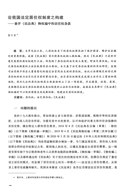导读:企业评估,权威资产评估,财产损失评估自 罗 马法 以 来 , 人 役 权 体 系下 的居 住权 便承 担 了保 护 弱 者、 维护意定 类型 的居 住 权进 行 立 法 , 却 忽视 了居住 权 的房屋评估法 定设 立 类 型固定资产评估 , 即法 定 居住 权 。 而 法 定 居住 权 制度 的立 法 在我 国存在必 要性 。 本 文基 于法 定 居 住 权 案 例 的 实证研 究 , 发 现 司法 实践 中存 在大 量 类型 化 的通 过 法 官 判 决生 效 的居 住 权 , 由此 以 法律规 定 的 形 式将 居住 权 的效 力法 定化是 当 前 的 紧迫 任 务 。 专业资产评估法 定 居 住 权制度 在 我 国立 法 历 史上 曾经 初 现 端倪 , 然而 之 后 的居 住 权制度 全 面废 除 终 止 了这 一 项 进 程 , 并且德 国 、 法 国 、 英 国 、 美 国 都存 在法 定 居 住权 制 度或类 似 制度 的立 法 和 司法 经 验 , 我 国 在 未 来修 订 《 民法 典 》 物权编 时可 以 吸 收借 鉴这 些 成 熟经 验 , 构 建法 定居住 权制度 。    |