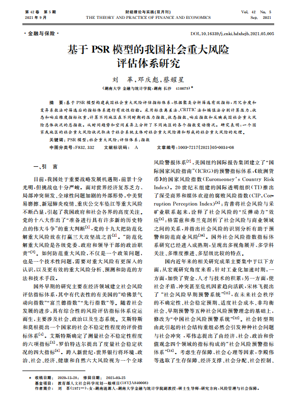 导读: 基于 PSR模型构建我国社会重大风险评估房地产估价指标体系,根据聚类分析筛选有效指标,整体资产价值评估用冗余度和变异系数法对筛选后的指标体系进行有效性检验。采用标准离差法、CRITIC法和熵值法分别计算力、状态和响应维度指标权重,损失评估计算不同地区在不同时期的压力指数、状态指数、财产评估响应指数和反映我国社会重大风险总体状况的总指数。林木资产评估从时间趋势和空间差异上分析了不同地区的各个指数变动情况。研究表明:一个国家或地区的社会重大风险状况取决于社会系统主体对社会重大风险源和形成的社会重大风险的处理。