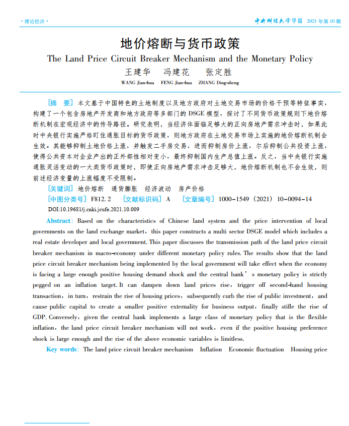 导读: 本文基于中国特色的土地制度以及地方政府对土地交易市场的房屋拆迁评估价格干预等特征事实,构建了一个包含房地产开发商和地方政府等多部门的 损失评估,房地产估价DSGE 模型, 探讨了不同货币政策规则下地价熔断机制在宏观经济中的传导路径。研究表明, 当经济体面临足够大的正向房地产需求冲击时, 拆迁房屋评估如果此时中央银行实施严格盯住通胀目标的货币政策, 上海房屋估价则地方政府在土地交易市场上实施的地价熔断机制会生效。其能够抑制土地价格上涨, 并触发二手房交易, 进而抑制房价上涨, 尔后抑制公共投资上涨,使得公共资本对企业产出的正外部性相对变小,房地产评估 最终抑制国内生产总值上涨。反之, 当中央银行实施通胀灵活变动的一大类货币政策时, 即使正向房地产需求冲击足够大, 地价熔断机制也不会生效, 则前述经济变量的上涨幅度不受限制。     |