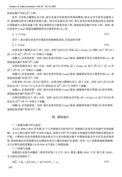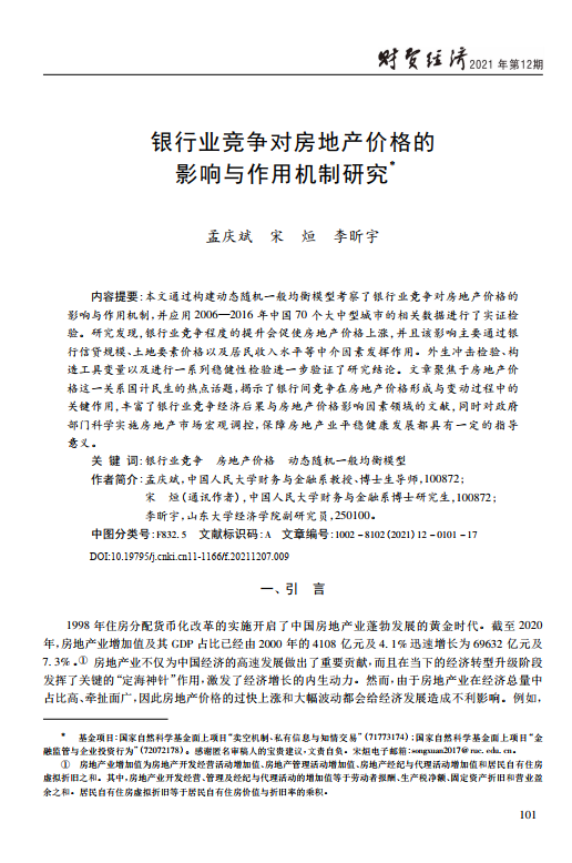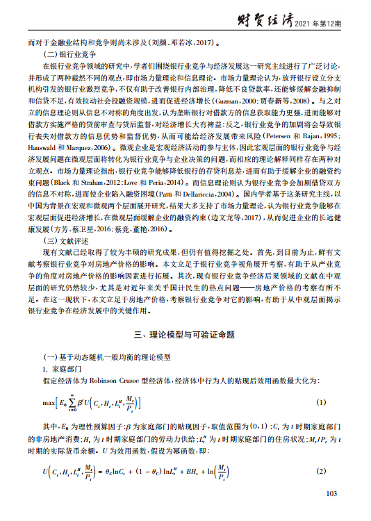 导读: 本文通过构建动态随机一般均衡模型考察了著作权评估银行业竞争对房地产价格的影响与作用机制,软件评估 并应用 2006—2016 年中国 70 个大中型城市的相关数据进行了实证检验。研究发现, 银行业竞争程度的提升会促使房地产价格上涨,商标价值评估 并且该影响主要通过银行信贷规模、土地要素价格以及居民收入水平等中介因素发挥作用。专有技术评估外生冲击检验、构造工具变量以及进行一系列稳健性检验进一步验证了研究结论。商标资产评估文章聚焦于房地产价格这一关系国计民生的热点话题, 商标无形资产评估揭示了银行间竞争在房地产价格形成与变动过程中的关键作用, 丰富了银行业竞争经济后果与房地产价格影响因素领域的文献, 同时对政府部门科学实施房地产市场宏观调控, 保障房地产业平稳健康发展都具有一定的指导意义。     |