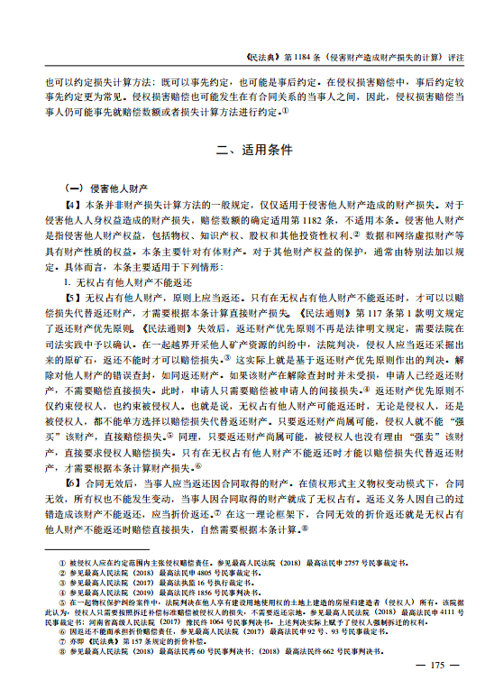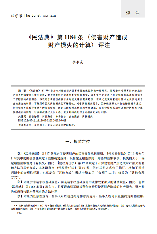 导读: 1184 条并未对侵害财产民事责任的承担作出一般规定, 矿业权评估而只是针对侵害财产造成财产损失的赔偿责任作出规定。船舶评估对于侵害财产造成的直接损害而言, 设备评估该条文主要适用于将该损害折算成价值损失予以赔偿的折价赔偿, 不适用于填补该损害本身的恢复原状费用赔偿。该条文规定的基础计算方法仅仅适用于直接损失的计算,房屋价格评估 不能用于否定间接损失的可赔偿性。房屋价值评估对于间接损失而言, 区分恢复原状和价值赔偿没有意义。采矿权评估间接损失并非被侵害财产的价值损失, 因此只能按照其他合理方式计算。在坚持按照基础方法的时间标准计算直接损失的同时, 可以将被侵权人因价格上涨受到的损失作为间接损失另行计赔。    |
