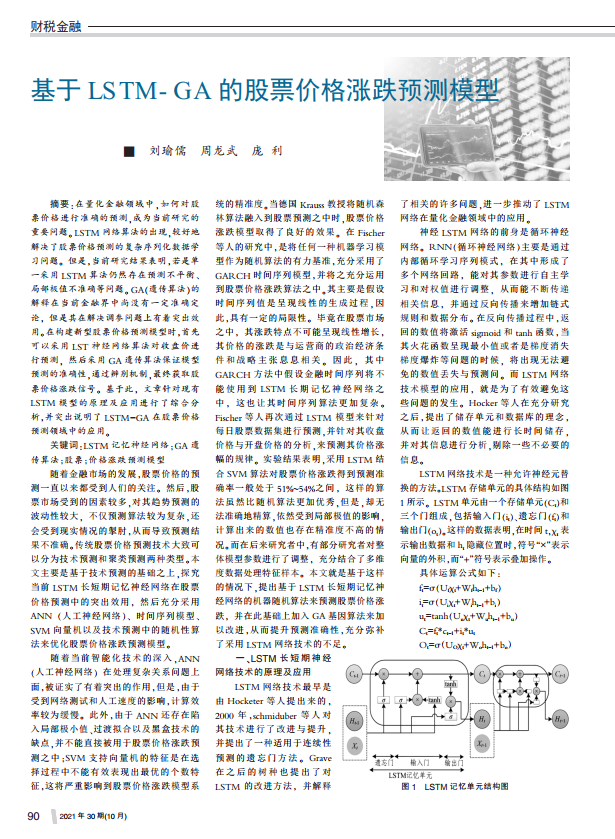 导读:著作权评估在量 化金融领 域中 ,软件评估如何对股票价格进行准确的预测,成为当前研究的重要问题。 LSTM 网络算法的出现,较好地解决了股票价格预测的复杂序列化数据学习问题。 但是,当前研究结果表明,专有技术评估若是单一采用 LSTM 算法仍然存在预测不平衡、局部极值不准确等问题。 GA(遗传算法)的解释在当前金融界中尚没有一定准确定论, 但是专利技术评估其在解决调参问题上有着突出效用。 在构建新型股票价格预测模型时,首先可以采用 LST 神经网络算法对收盘价进行预测, 商标资产评估然后采用 GA 遗传算法保证模型预测的准确性,通过辨别机制,最终获取股票价格涨跌信号。 基于此, 文章技术评估针对现有LSTM 模 型的原理及应用进行了综合分析,并突出说明了 LSTM-GA 在股票价格预测领域中的应用   |