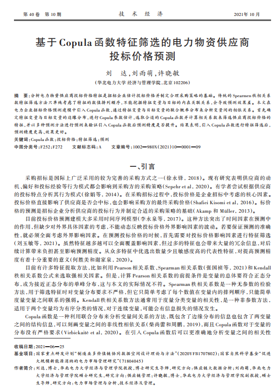 导读 :拆迁评估分析电力物资供应商投标价格特征是招标企业估计整体资产价值评估投标价格并制定合理采购策略的基础。房屋拆迁评估传统的 Spearmen 秩相关系数特征筛选拆迁估价方法只单纯考虑了特征的数值排列顺序,不能挖掘特征变量与目标的内在关联关系,会导致预测效果差。本文在电力企业招标价格预测建模中引入 Copula 函数,通过特征变量与目标变量的联合概率分布来分析变量间的相依关系。首先资产评估确定特征变量与目标变量的边缘分布,上海资产评估进行 Copula 参数估计,选取合适的 Copula 函数并计算相关系数来筛选供应商投标价格的特征,并以多种预测方法进行预测来验证引入 Copula 函数后预测精度是否提升。结果表明,引入 Copula 函数进行特征筛选后,预测精度更高、效果更好。    |