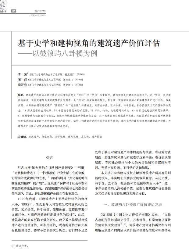 导读 : 建筑遗产的内涵及其企业价值评估资产价值评估标准体系包含“时间”和“空间”双重维度。房产价格评估建构视角是对建筑本体的关注,是“空间”层次横向的解读,装修评估传统史学视角是对建筑原型的溯源,是“时间”维度纵向的探析。商标价值评估基于这一视角对鼓浪屿八卦楼建筑遗产进行分析,价值评估结果表明:八卦楼在拥有建筑遗产“真实性”和“完整性”的基础上,其历史价值、艺术价值、科学价值、社会价值及文化价值分别体现在:1)历史信息的空间叙事;2)中西美学特质的形式互译;3)材料、结构、构造的建构表达;4)商标无形资产评估时代记忆的空间凝聚与演绎;5)地域情感与记忆的符号象征。软件资产评估相较于传统建筑遗产价值评估方法,这一视角在回归建筑遗产本体、关注其形成和演变的时代背景和文化动力以及着眼于其作为空间遗产的材料、结构、构造的表达过程等方面具有优势。通过史学和建构视角解析建筑遗产价值,为建筑遗产价值评估提供思路启发与理论支持。   |