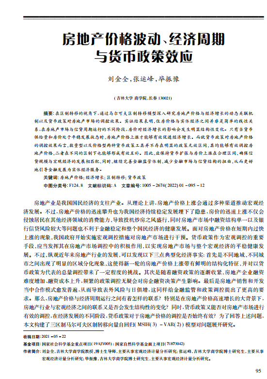 导读 : 在区制转移的视角下,评估专利价值通过马尔可夫区制转移模型深入研究房地产价格与经济增长的动态关联机制以及机器设备评估货币政策对房地产市场的调控效果。实证结果表明,个人资产评估住房价格与实体经济之间并非是简单的线性关系,在房地产市场与信贷周期运行的不同阶段,房价对经济增长的影响会发生明显结构性变化。房地产估价只有当货币供给量和房价处于平稳发展状态时,房地产价格上涨才能够有效促进经济增长。而就货币政策对房地产价格的调控效果而言,数量型以及价格型两种货币政策工具并不存在明显的政策无效区间,其均能够有效调控房地产价格,二者在不同的区制下也能够形成有效互补。因此,整体资产价值评估应保持货币扩张与房价上涨在合理区间,确保信贷规模与宏观经济的发展相匹配,同时,继续完善金融监管体制,减少金融市场与信贷结构的扭曲,从而更好地引导金融发展为实体经济服务。  |