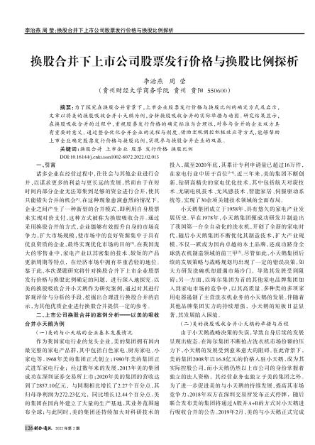 导读:无形资产评估公司为了无形资产评估探究在换股合并背景下,价值评估上市企业股票发行价格与换股比例的确定方式及启示,文章经营权评估以将美的换股吸收合并小天鹅为例,分析换股吸收合并的实际举措与动因。研究结果显示,在换股吸收合并的过程中,融资评估重视股票发行价格的确定标准与合理性,对参与合并的企业双方具有重要的意义。特许经营权评估通过整合优化合并企业的流程与制度、借助宏观调控积极效应等方式,能够帮助上市企业确定股票发行价格与换股比例,实现参与换股合并企业的双赢。