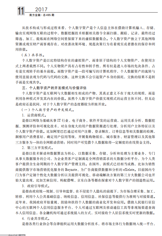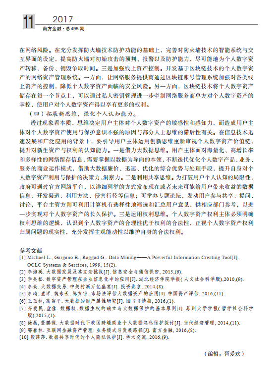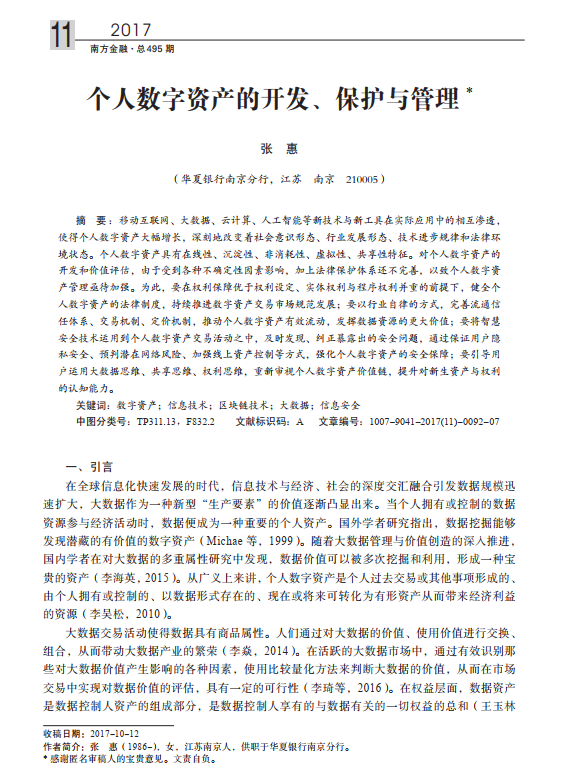导读 : 移动互联网、大数据、云计算、人工智能等新技术与新工具在实际应用中的相互渗透,企业评估,企业资产价值评估,设备资产评估使得个人数字资产大幅增长,深刻地改变着社会意识形态、行业发展形态、技术进步规律和法律环境状态。个人数字资产具有在线性、沉淀性、非消耗性、虚拟性、共享性特征。对个人数字资产的开发和价值评估,由于受到各种不确定性因素影响,加上法律保护体系还不完善,以致个人数字资产管理亟待加强。为此,要在权利保障优于权利设定、实体权利与程序权利并重的前提下,健全个人数字资产的法律制度,持续推进数字资产交易市场规范发展;要以行业自律的方式,完善流通信任体系、交易机制、定价机制,推动个人数字资产有效流动,发挥数据资源的更大价值;个人资产评估,上海资产评估要将智慧安全技术运用到个人数字资产交易活动之中,及时发现、纠正暴露出的安全问题,通过保证用户隐私安全、预判潜在网络风险、加强线上资产控制等方式,强化个人数字资产的安全保障;要引导用户运用大数据思维、共享思维、权利思维,重新审视个人数字资产价值链,提升对新生资产与权利的认知能力   |