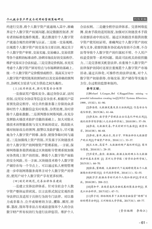 导读: 依据生产力要素理论,在® 息革命主导的时代 ,生产力要素发生了深刻的变化,大数据作为一种新型生产要素被进一步被强调,房产评估,房子拆迁评估,房屋评估当个人拥有或控制的数据资源参与到经济活动并进一步提升生产效率时,个人数据资源就可以说是一种重要的个人资产表现形式。从形成过程看,个人信息主体在借助计算机输人、存储、输出实现网络互联的过程中,房地产估价,房屋拆迁评估,上海资产评估同步被精进的数据挖掘技术,根据指令全面扫描、跟踪、记录,而最终经过筛选、加工,提炼、保留下来的个人数据集合,对改善决策环境、规范决策行有着现实或者潜在的价值。因此基于数据的有用性与价值性,个人数字资产可以被认定是个人过去交易或其他事项形成的、由个人拥有或控制的、以数据形式存在的、现在或将来可转化为有形资产、带来经济利益的资源。  |