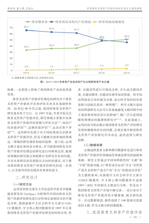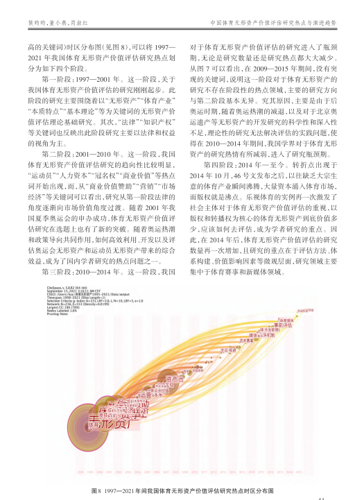 导读:随着体育产业的发展和数字经济时代的到来,体育无形资产的价值在经济活动中的作用日益凸显。评估公司,评估机构,房地产评估机构为厘清体育无形资产价值评估领域研究线索与研究动态,以新版中文社会科学引文索引( CSSCI )数据库和中文核心期刊数据库( 1997 — 2021 年)收入的 140 篇文献作为数据样本,利用 CiteSpace 科学文献可视化分析软件生成关键词共现、聚类、突现分析知识图谱,直观呈现并解读我国体育无形资产价值评估研究概貌。研究发现:我国从 1997 年开始关注体育无形资产,随后以体育无形资产价值评估为主题的相关研究数量逐渐增多;体育无形资产价值评估涉及多学科领域,目前我国体育无形资产价值评估的主要研究机构为国内的体育高校,高校与体育企业和其他领域研究机构之间的研究合作不够紧密;软件评估,资产评估,价值评估,企业资产评估研究进程分为 4 个阶段,其中冠名权、人力资本、商业价值、评估体系、体育赛事、新媒体等热点关键词相继出现;文献研究内容综合分析揭示出我国体育无形资产价值评估研究存在资产范围模糊、分类较混乱且不全面、评估专业性不强、缺乏实证研究等问题。最后,结合新时代背景,对未来体育无形资产价值确认和评估研究的发展,提供方向性的建议,以推动体育无形资产价值评估研究的进一步深入,为评估实践提供参考。   .png) |