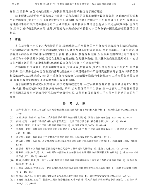导读:城市住宅价格影响因素繁多且复杂 , 同一城市内部的二手房价格也存在明显的空间异质性 . 本研究以住宅 POI数据为研究对象 , 评估公司,评估机构,房地产评估机构通过探索空间区位要素的分布特征与珠海二手房价格的相关性 , 分析其影响因素及空间驱动机制 . 结果表明 : 珠海二手房价格的整体趋势表现为由主城区向新城 、 中心镇的渐进式 、 集约组团型空间结构 , 空间上呈现出自西向东逐渐升高 、 从北到南略有下降的趋势特征 . 珠海二手房价格与公共基础服务设施 、 交通设施 、 教育资源 、 生活服务等因子呈现显著正相关 , 生活便利性和优质的教育资源对房价具有较强的影响 .鉴于基础数据和研究尺度的约束 , 本文尚有待改进之处 . 一方面从软件评估,资产评估,价值评估,企业资产评估数据源来看 , 香洲城区的 POI 数据十分详细 , 其他区域的 POI 数据点较为分散 、 零碎 , 会对最终结果产生影响 ; 另一方面对二手房价格的影响因素测算需要构建更加科学可靠的评价指标体系 , 以便更有效地分析二手房价空间驱动因素的作用机制 .  |