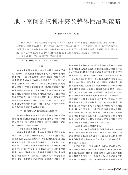 导读:开发利用地下空间是提高土地利用效率、增强城市综合承载能力的重要途径。但是,评估公司,评估机构,房地产评估机构由于权利边界模糊、立法滞后、监管不到位等原因,地下空间在土地出让金、地下人防工程和小区地下车库的产权归属、农村地下空间权属等方面存在较多争议和冲突,软件评估,资产评估,价值评估,企业资产评估影响了地下空间的大规模开发利用。因此,需要从地下空间法律体系、地下空间所有权和使用权、地下工程权属等方面进行整体性治理。随着城市化快速发展, 许多大中城市出现了严重的“城市病”。 大规模开发利用城市地下空间(以下简称地下空间)已成为提高城市土地利用效率、挖掘国土空间资源、扩大城市空间容量的重要手段 [1] 。 进入 21 世纪以来,我国地下空间开发利用取得了长足进展,开发规模快速增长,开发类型逐渐丰富。 但是随着开发利用广度和深度的不断拓展, 地下空间产权制度不完善及由此导致的权利冲突和纠纷等问题逐渐凸显, 已成为制约地下空间进一步开发利用的障碍。 因此,研究地下空间的权利冲突及治理策略, 既是当前地下空间开发利用中迫切需要解决的现实问题, 也是实现城市可持续建设和发展需要研究的科学问题。   |